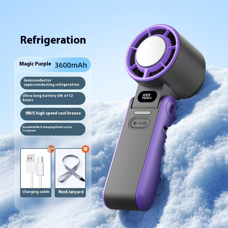 High-Speed Refrigeration Ice Compress Small Handheld Fan Outdoor Portable Foldable