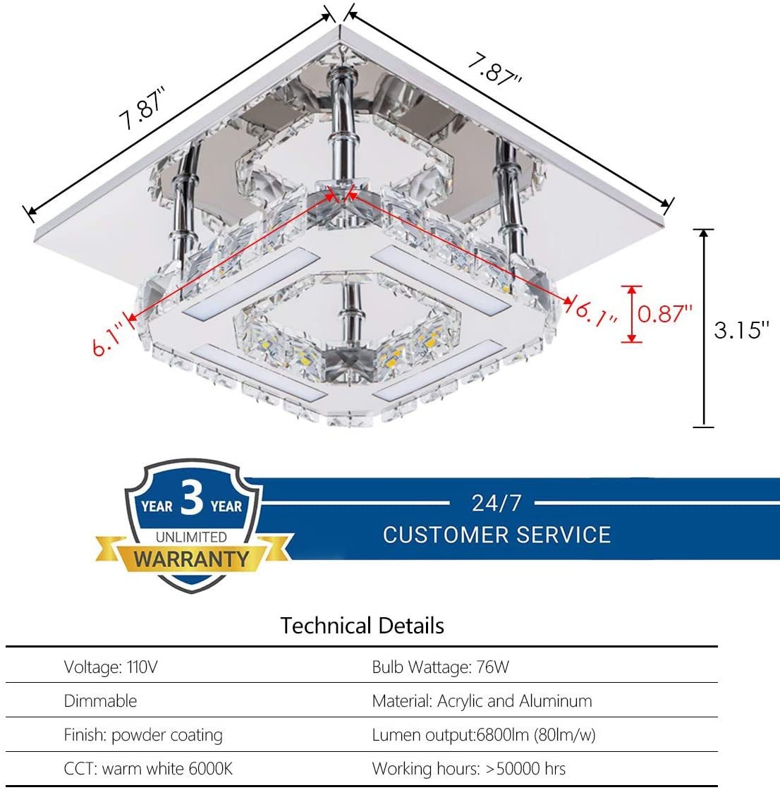 Built with energy-efficient LED technology, it delivers bright, evenly distributed illumination while maintaining a soft, eye-friendly glow. The crystal accents reflect light beautifully, enhancing ambiance without overwhelming the room—perfect for bedrooms, living rooms, dining areas, and upscale interiors.